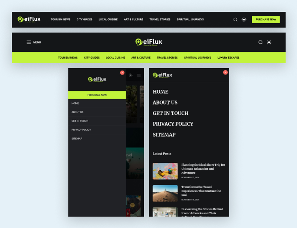 eiFlux adalah theme WordPress premium yang dirancang khusus untuk blog seputar akomodasi, destinasi wisata, kuliner, dan inspirasi perjalanan—menjadikan setiap cerita lebih menarik dan profesional.