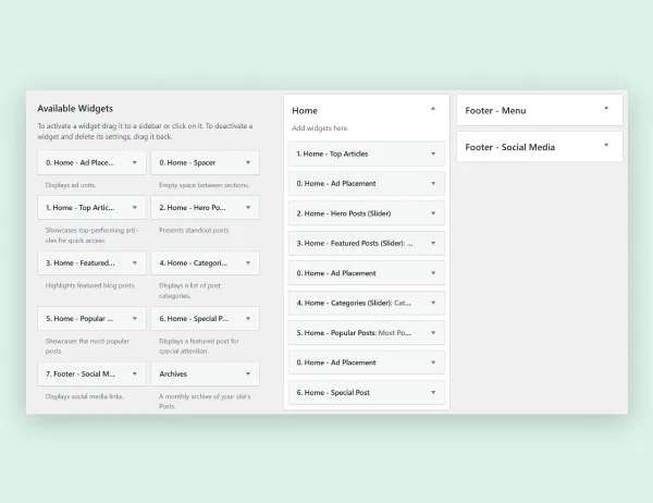Memudahkan Anda menyesuaikan tampilan, terutama di halaman depan, melalui Appearance > Widgets.